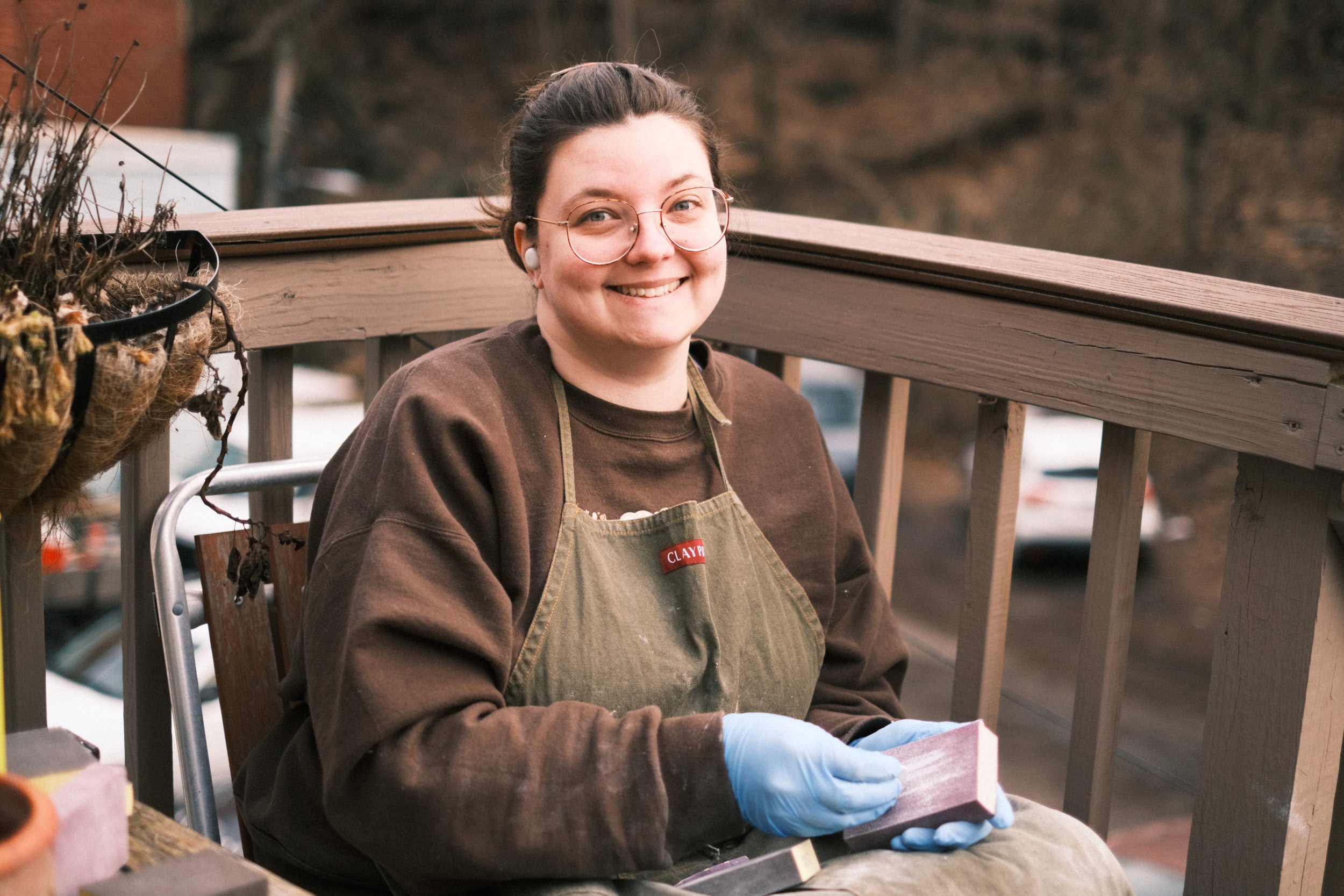 Her ceramics journey began after her fiancé gifted her a clay date night at Yay Clay! studio in the Port Richmond neighborhood of Philadelphia which sparked a love for wheel throwing. She now attends advanced wheel-throwing classes at BabyFace studio. While she primarily focuses on functional pottery—especially yarn bowls and playful mugs—she is always exploring new forms, glazes, and techniques.